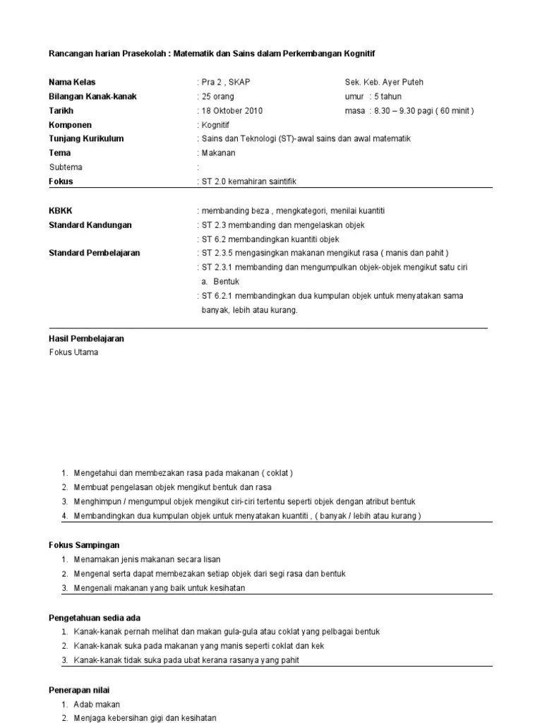 Boleh menamakan bentuk dua dimensi rph matematik prasekolah. Rancangan pengajaran harian prasekolah :